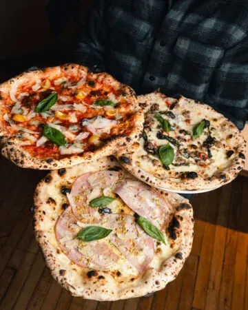The result, authentic Neapolitan pizza. Soft, light and fluffy pizza with an airy and raised cornicione crust.